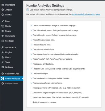 Komito Analytics é uma extensão gratuita e de código aberto que aprimora as funções do software de análise web mais popular. Com ele, os usuários podem acessar uma variedade de insights sobre o comportamento dos visitantes, incluindo acompanhamento de interações sociais, envios de formulários e cliques em links de chamadas para ação (CTA). Além disso, permite rastrear visualizações de páginas por usuários logados em redes sociais, downloads, links externos e eventos de vídeo e áudio, além de eventos de rolagem e impressão.